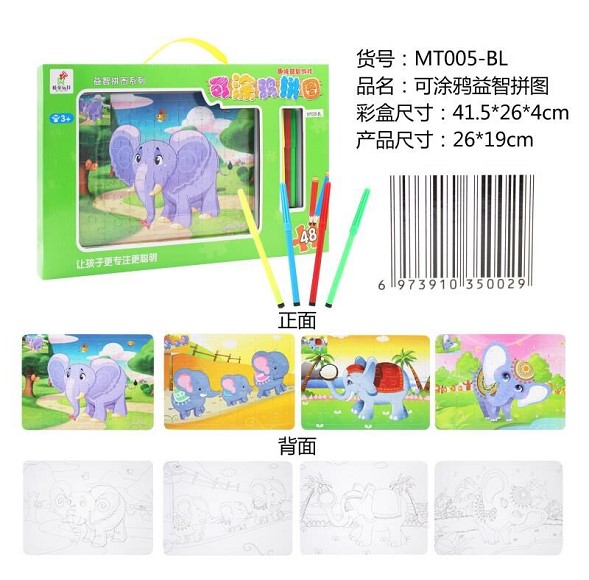 可涂码大象拼图(4拼图+4色笔)