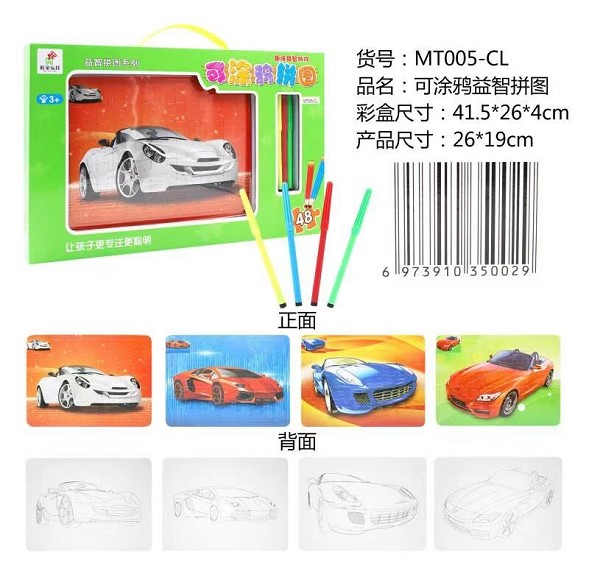 可涂鸦跑车拼图(4拼图+4色笔)