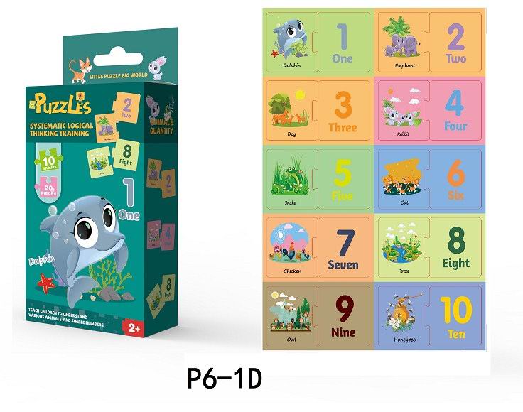 系统性逻辑思维训练数字动物配对拼图 (10套20对) 白卡材质