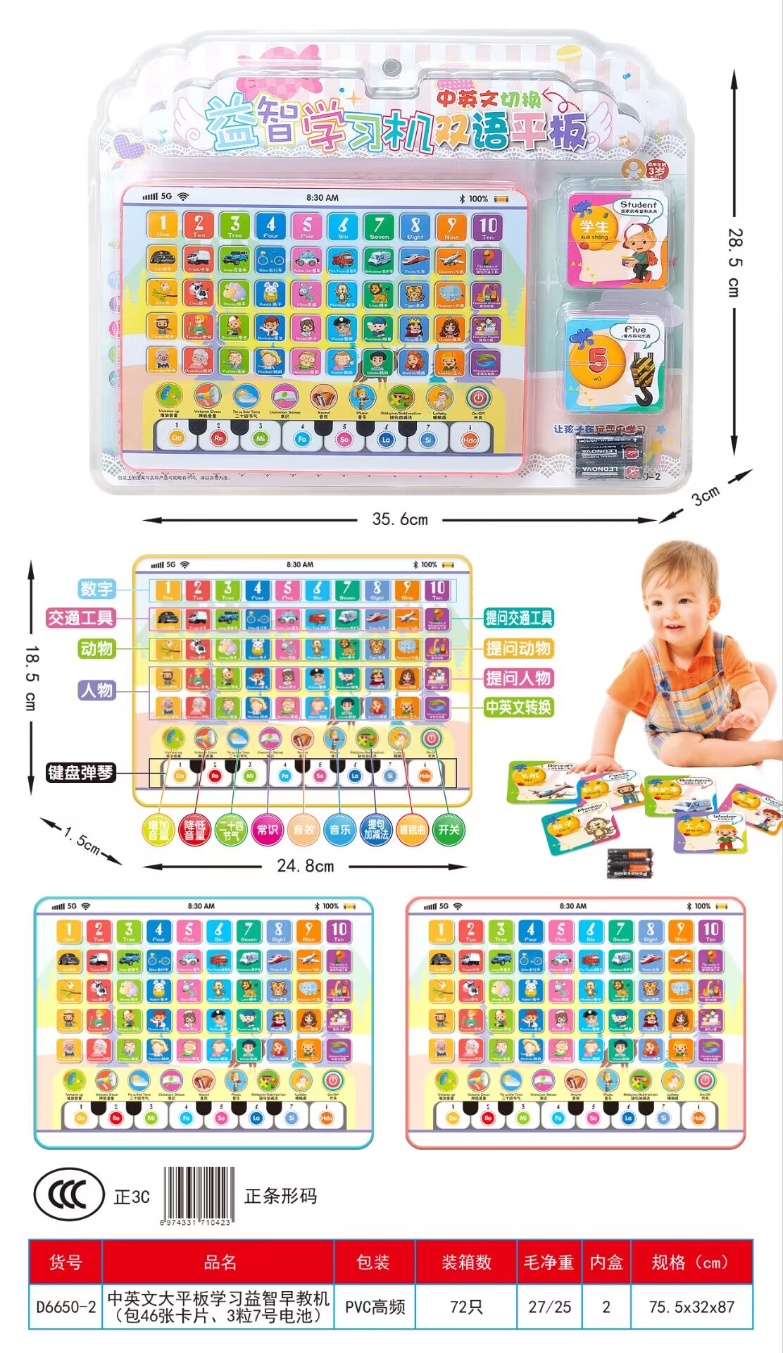 中英文大平板学习益智早教机(包46张卡片、3粒7号电池