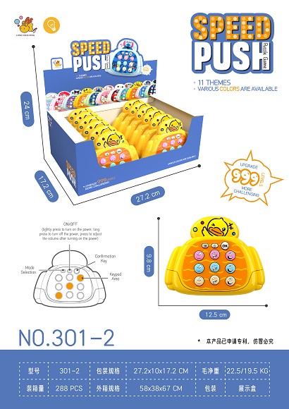 减压益智灭鼠硬按键游戏机 新款9按键 小黄鸭图案 第三代999闯关 3色混装 |