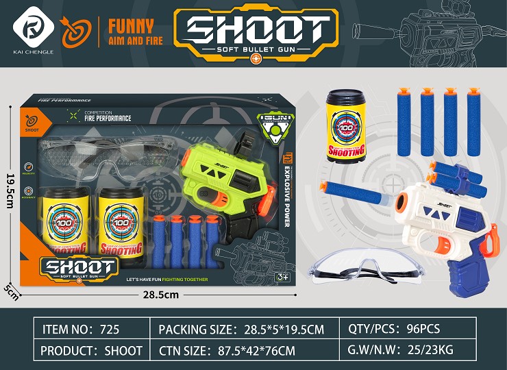 软弹枪 (2色混色,配1个眼镜,一个饮料瓶,配4粒软弹 )