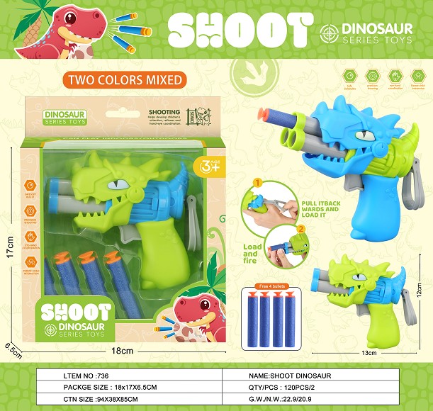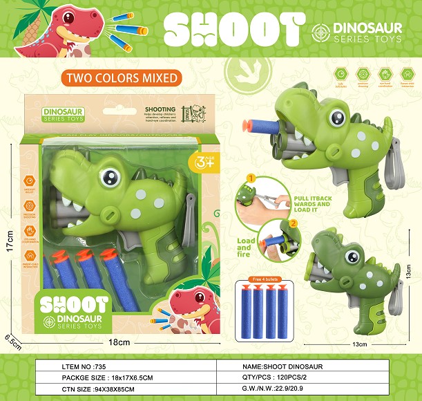 卡通霸王龙软弹枪 (2色混装,配4粒软弹)