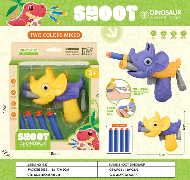 卡通三角龙软弹枪 (2色混装,配4粒软弹)