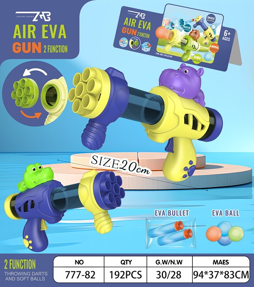 搪胶鳄鱼、河马迷你两用空气动力枪(3粒球、2条EVA弹)10只/盒