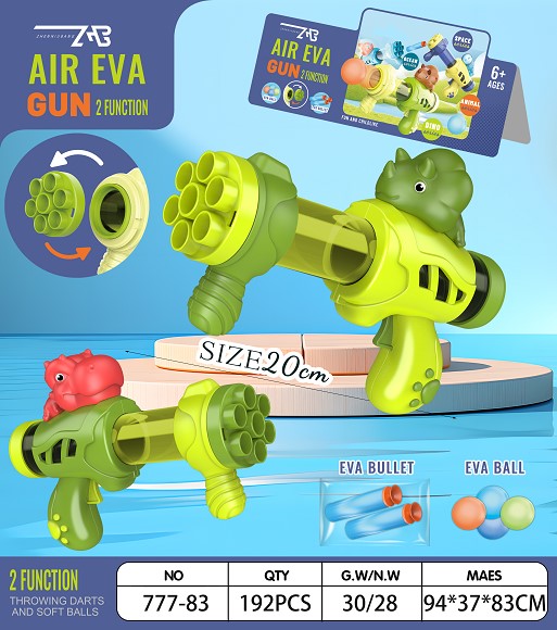 搪胶霸王龙、三角龙迷你两用空气动力枪(3粒球、2条EVA弹)10只/盒