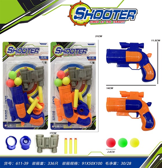 黄色弹簧鲨鱼两用空气动力枪配可乐罐(6粒球、6条EVA弹) |