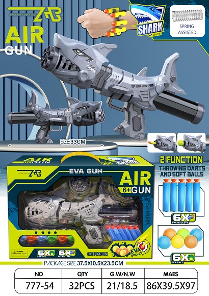 灰色弹簧鲨鱼两用空气动力枪(6粒球、6条EVA弹) |