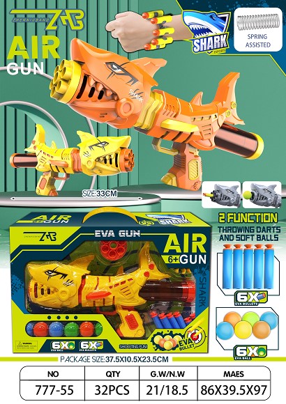 黄色弹簧鲨鱼两用空气动力枪(6粒球、6条EVA弹) |