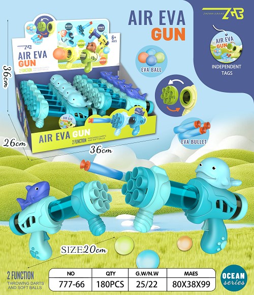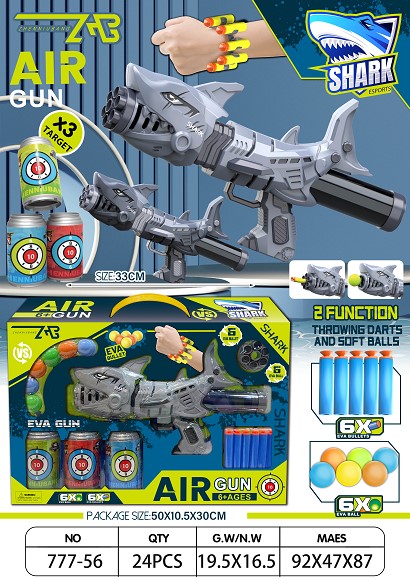 搪胶鲨鱼、鲸鱼迷你两用空气动力枪(3粒球、2条EVA弹)10只/盒 |