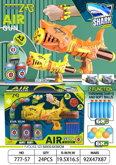 黄色鲨鱼两用空气动力枪配可乐罐(6粒球、6条EVA弹) |