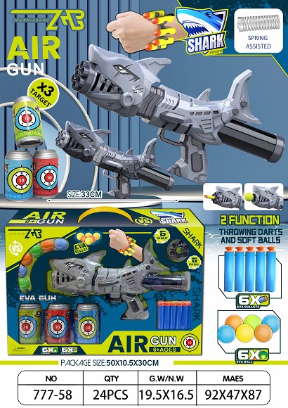 灰色鲨鱼两用空气动力枪配可乐罐(6粒球、6条EVA弹) |