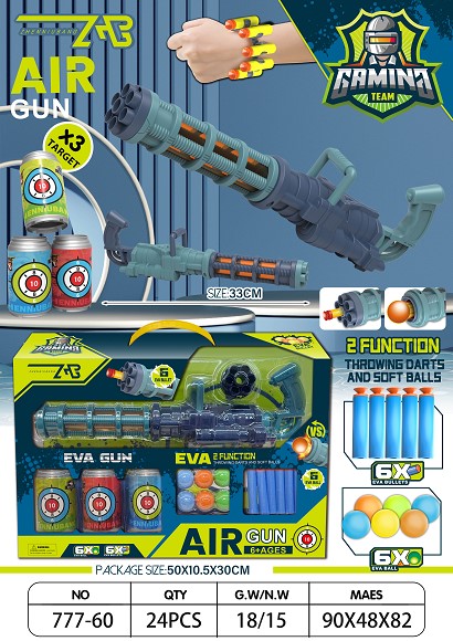 蓝色加特林两用空气动力枪配可乐罐(6粒球、6条EVA弹) |