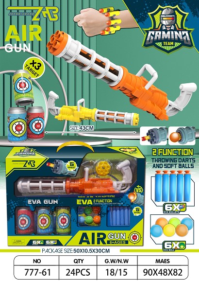黄色加特林两用空气动力枪配可乐罐(6粒球、6条EVA弹) |