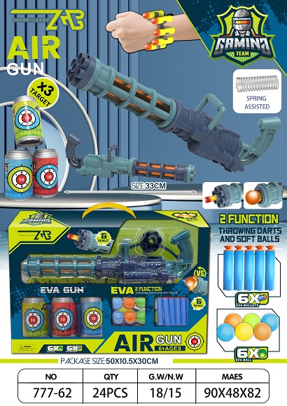 蓝色弹簧加特林两用空气动力枪配可乐罐(6粒球、6条EVA弹) |