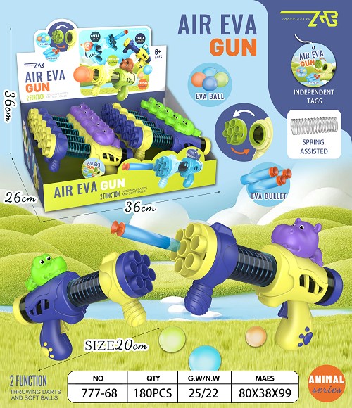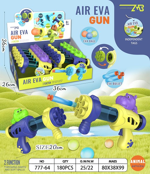 搪胶鳄鱼、河马迷你两用空气动力枪(3粒球、2条EVA弹)10只/盒 |