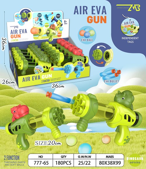 搪胶霸王龙、三角龙迷你弹簧两用空气动力枪(3粒球、2条EVA弹)10只/盒 |