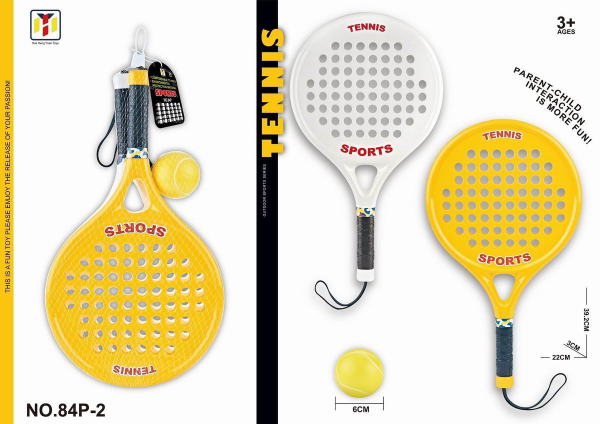 黄色白色防脱手PP板式网球拍*2+PU球*1
