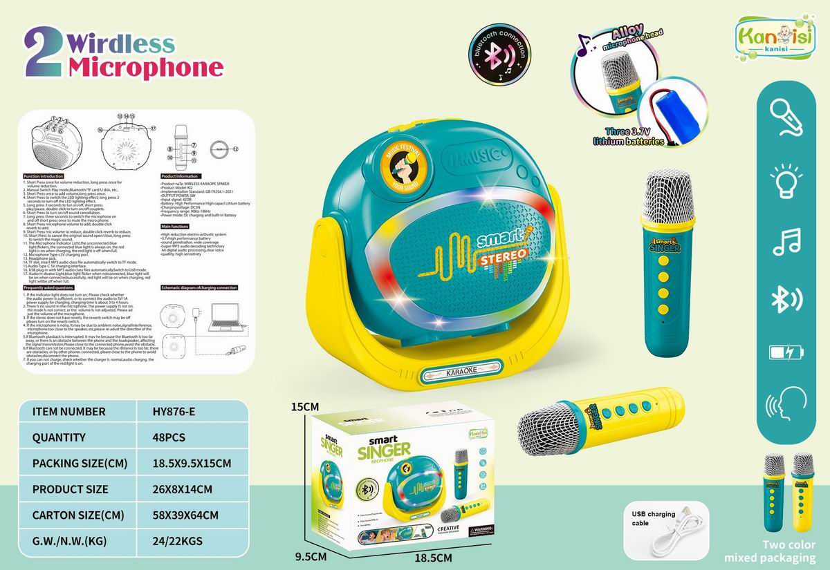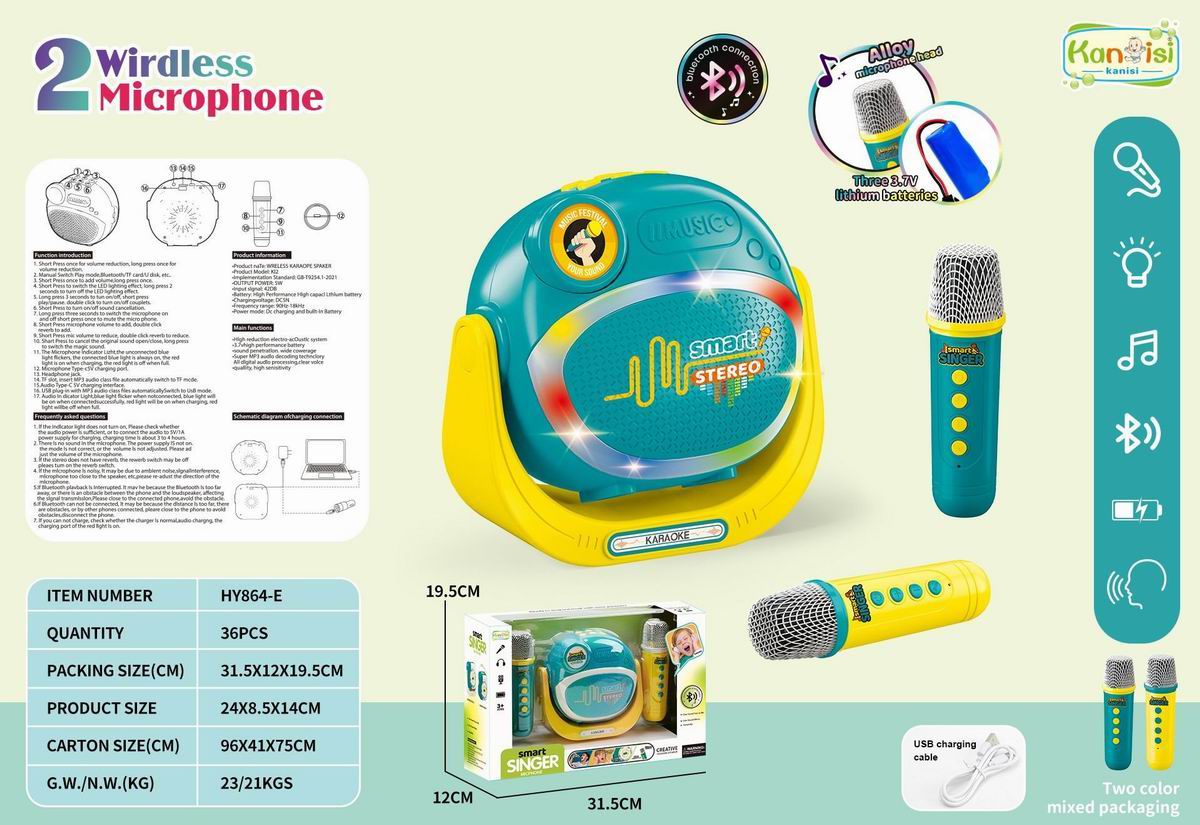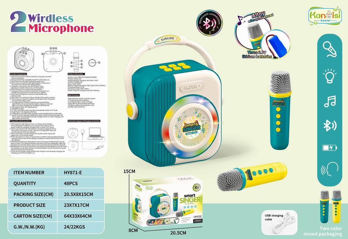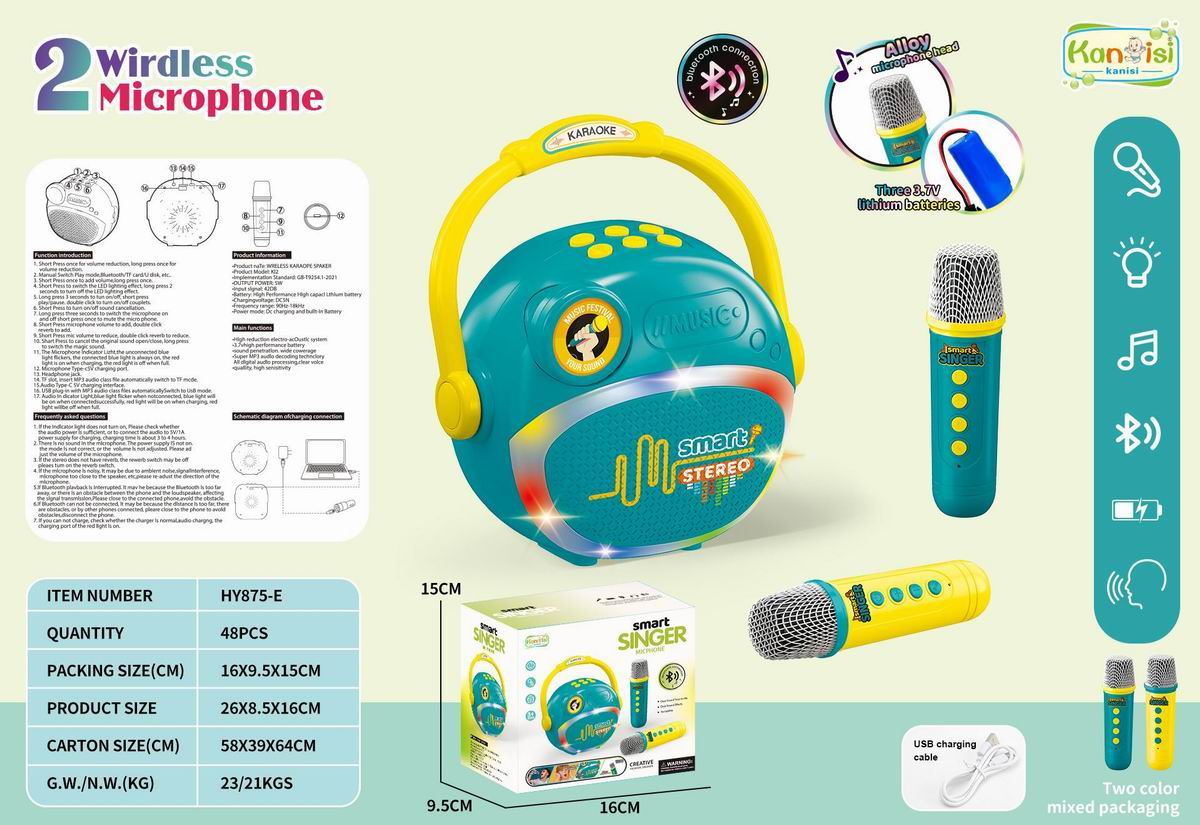 蓝牙无线灯光音乐双话筒麦克风音响
