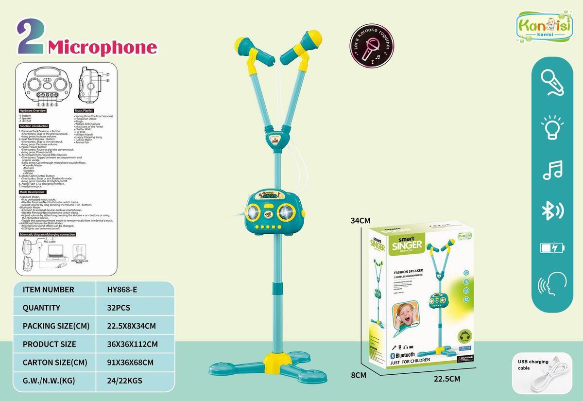 蓝牙灯光音乐高脚双话筒麦克风音响