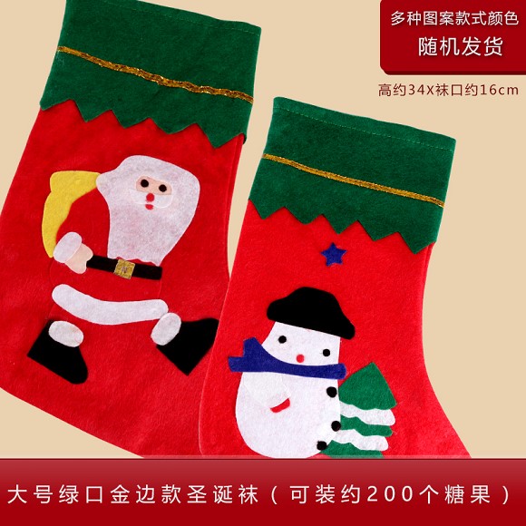 (大号)绿口金边贴花圣诞袜