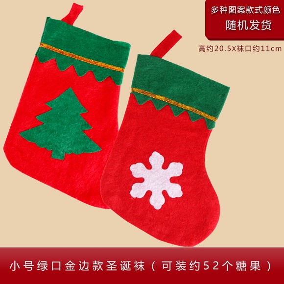 小号绿口金边圣诞袜(雪花,树)