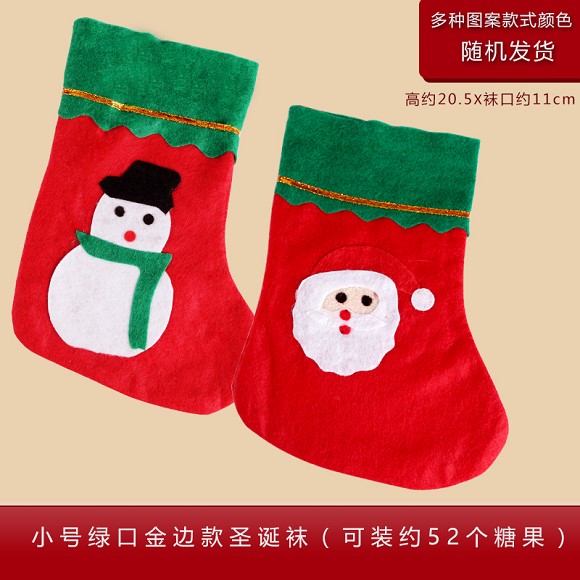 小号绿口金边圣诞袜(老人,雪人)