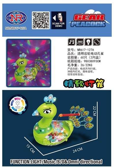 透明齿轮电动孔雀带灯光音乐