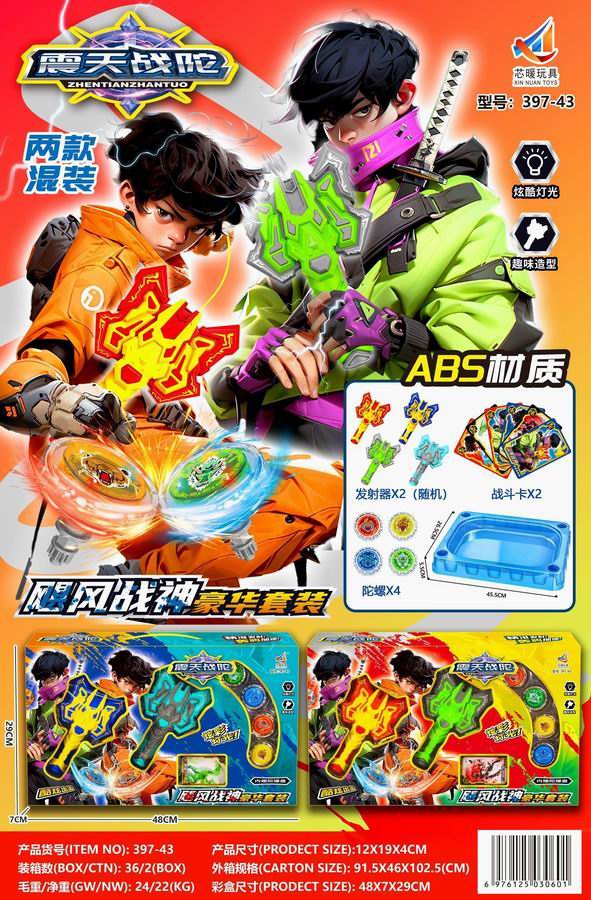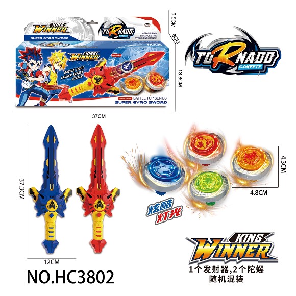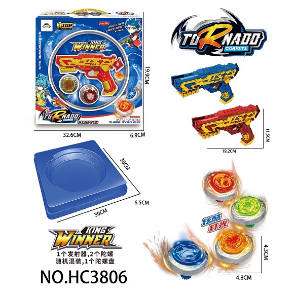 手把陀螺发射器(2条发射器.4粒陀螺)二色混装.带陀螺盘