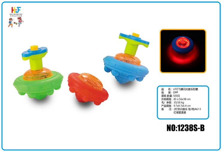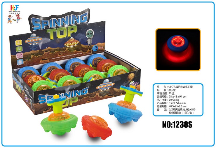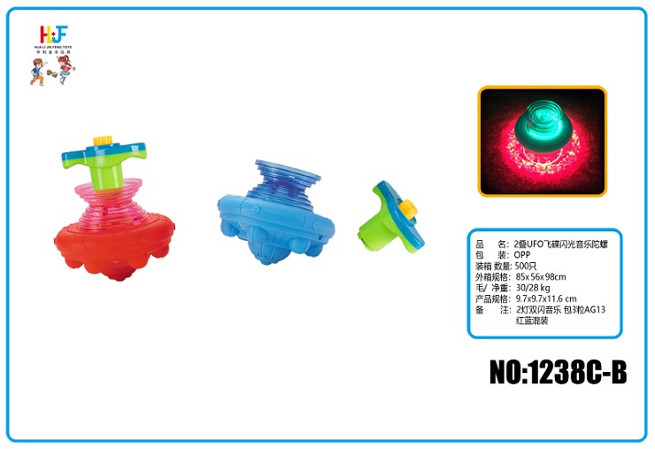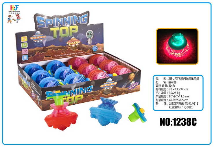 2叠UFO飞碟闪光音乐陀螺英文包装