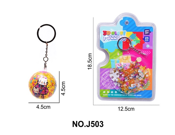 小猫B款3D球形立体拼图钥匙扣(25PCS)