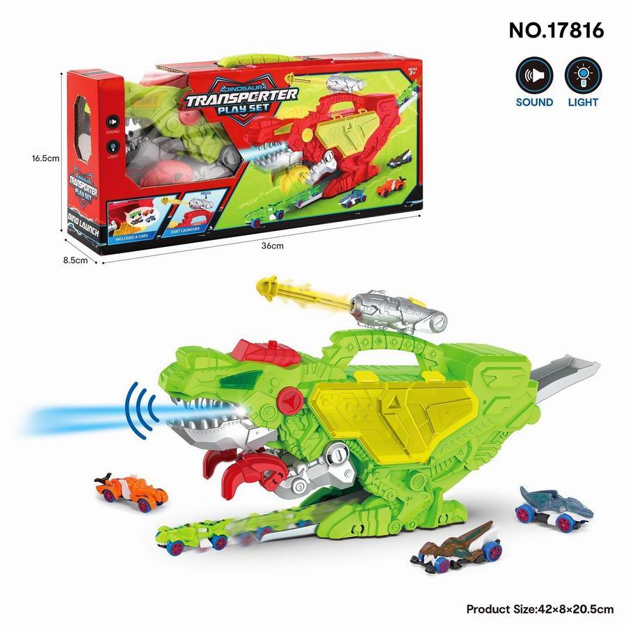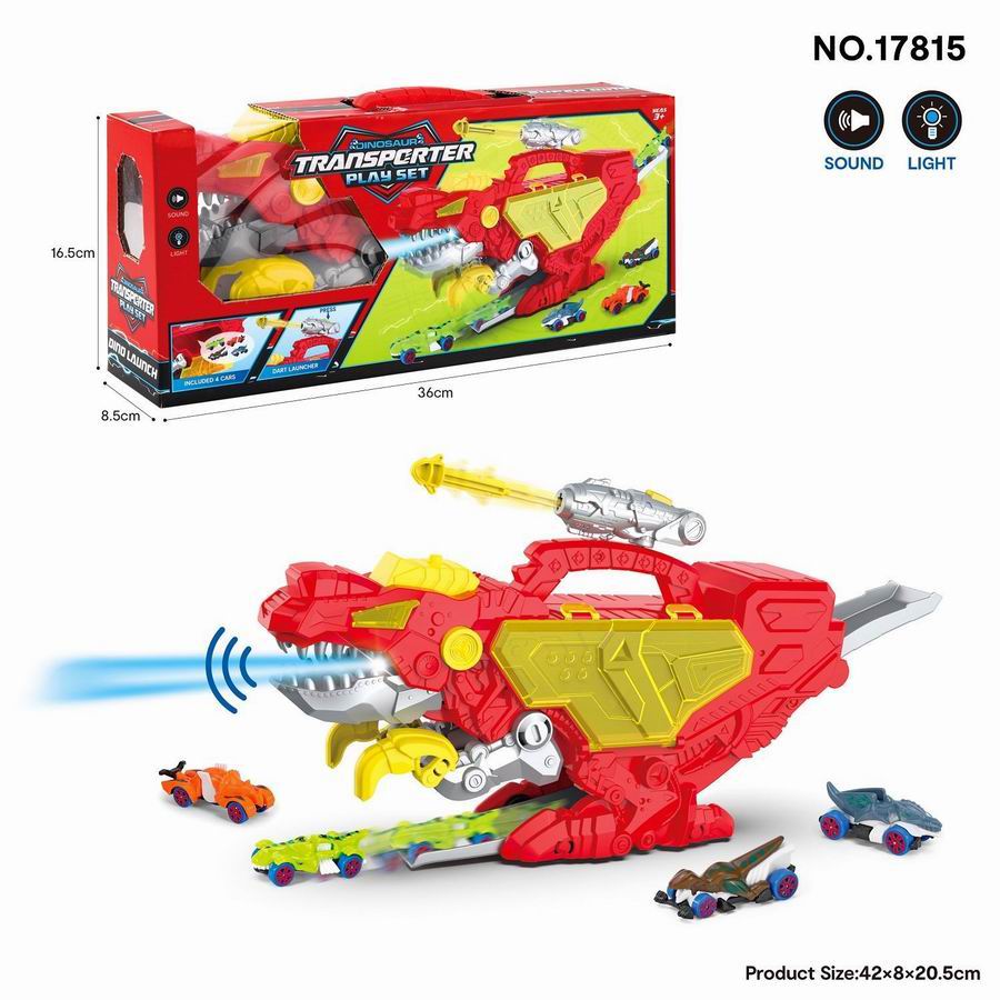 声光恐龙收纳轨道车(红色 配4个车子,发射炮)