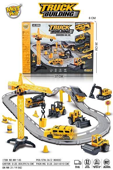 电动城市轨道车合金工程套装(配1只电动车,2只合金工程车,可活动吊塔路标)(一颗AA不包电)