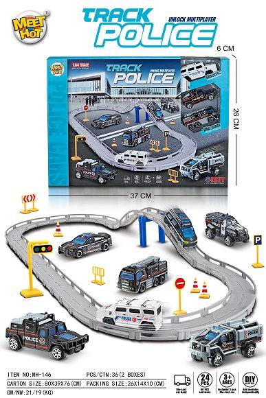 电动城市轨道车合金警察套装(配1只电动车,2只合金警察车,路标)(一颗AA不包电)