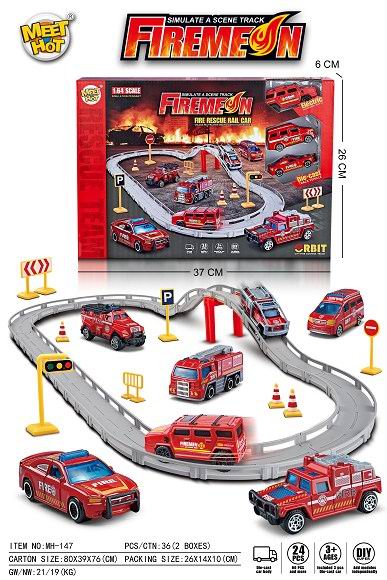 电动城市轨道车合金消防套装(配1只电动车,2只合金消防车,路标)(一颗AA不包电)