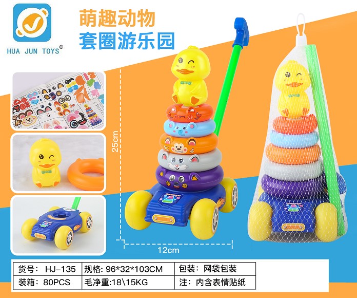 六圈萌鸭套圈推车叠叠乐