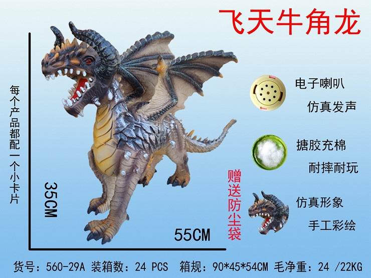 28英寸搪胶抱蛋牛角龙(带IC叫声)