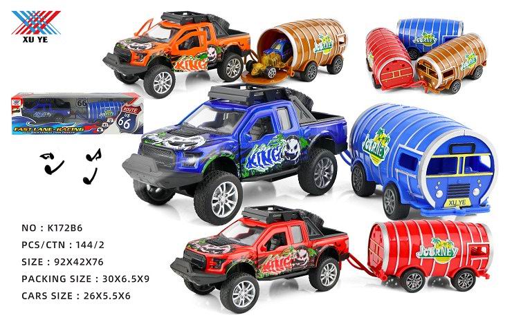 1:32合金皮卡拖房车开门回力灯光音乐(1只装)