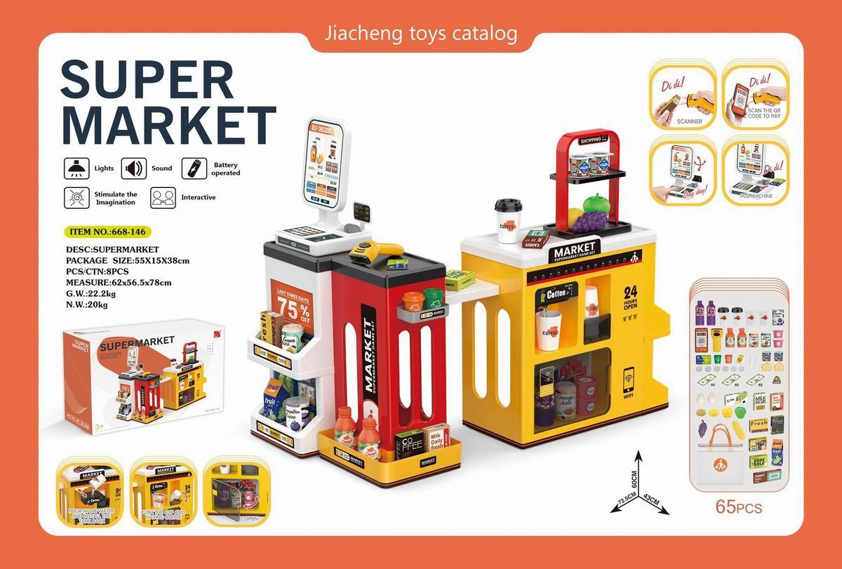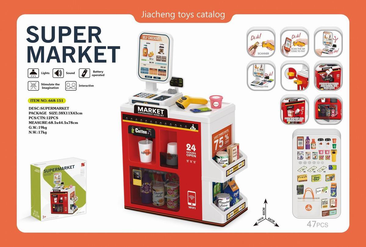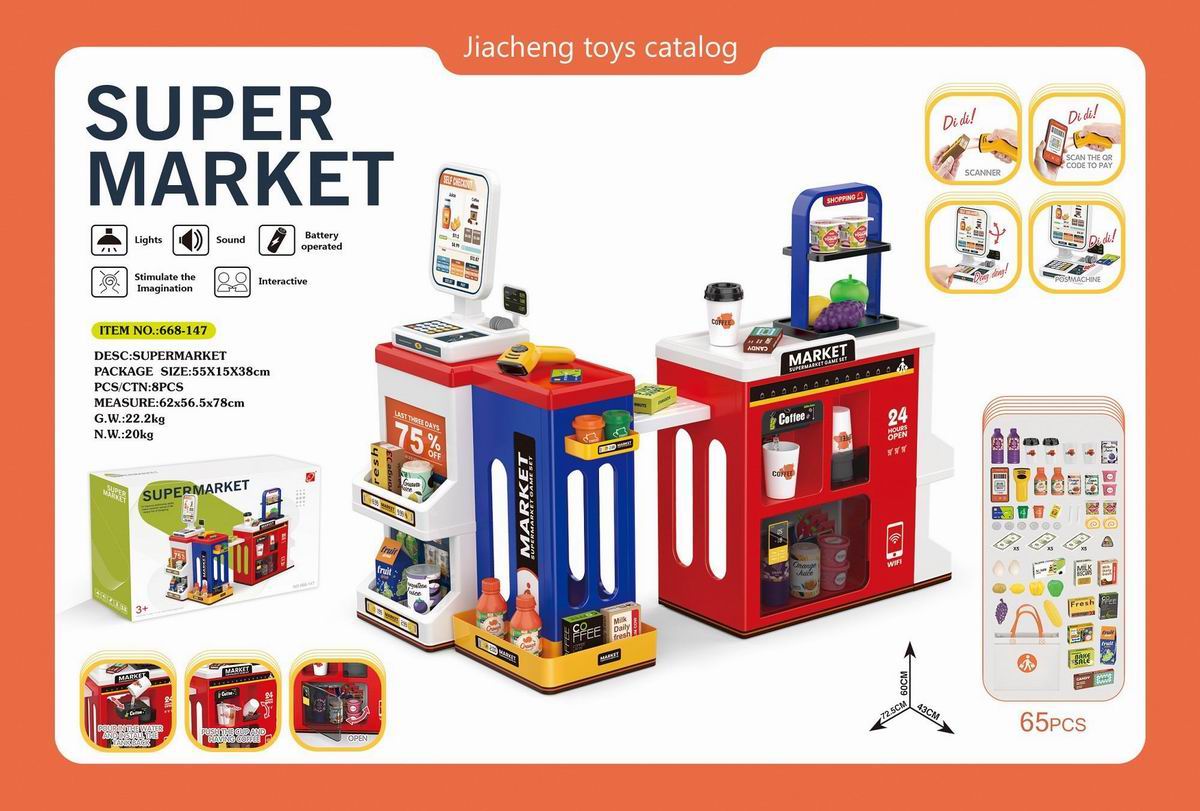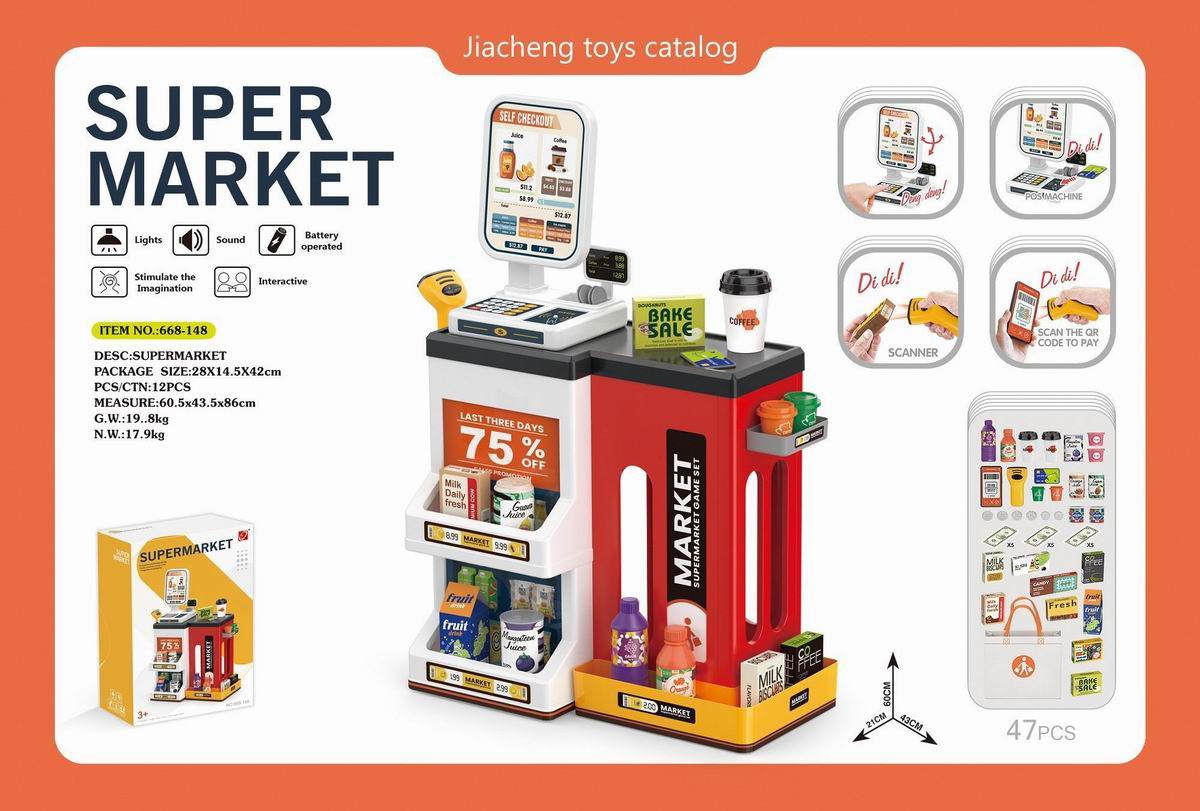 豪华超市组合套装+购物袋+带电扫描器、收银刷卡机(2粒AAA+2粒AA不包电) |