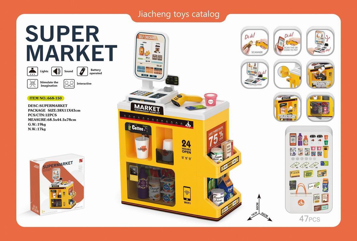豪华超市组合套装+购物袋+手动出水+带电扫描器、收银刷卡机(2粒AAA+2粒AA不包电) |
