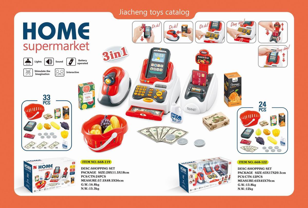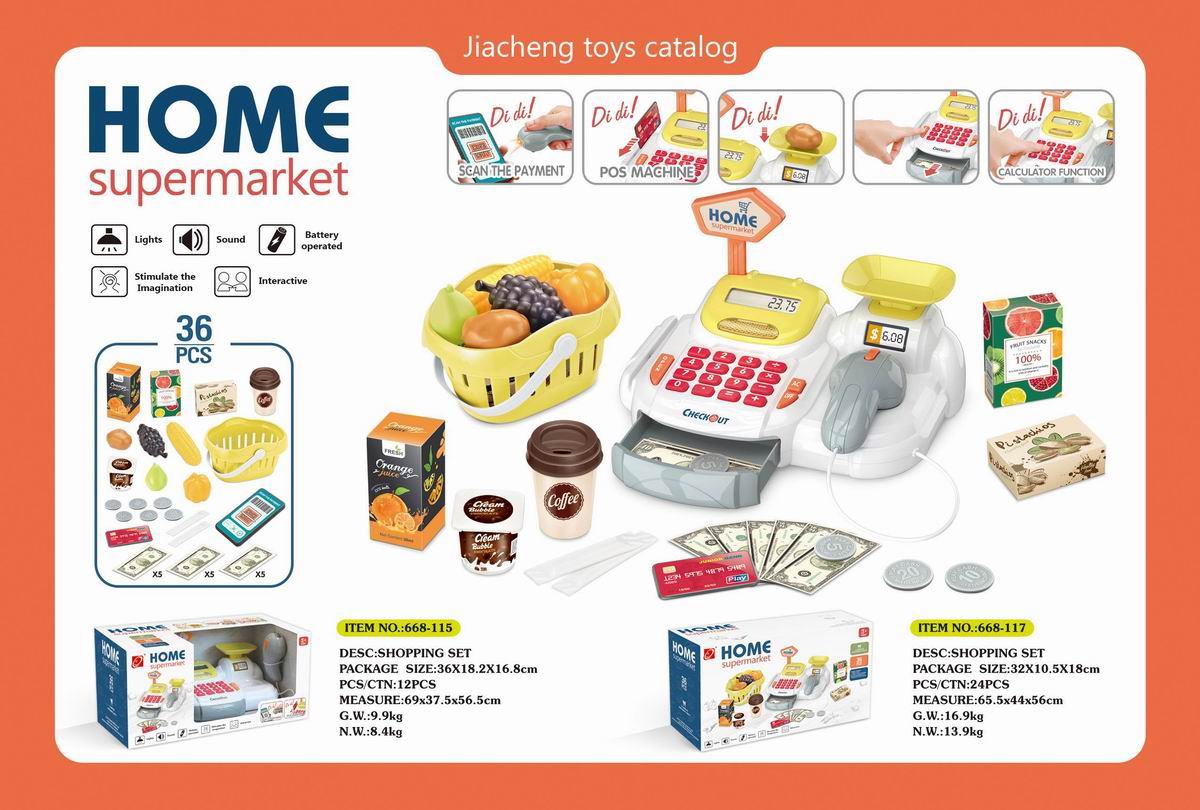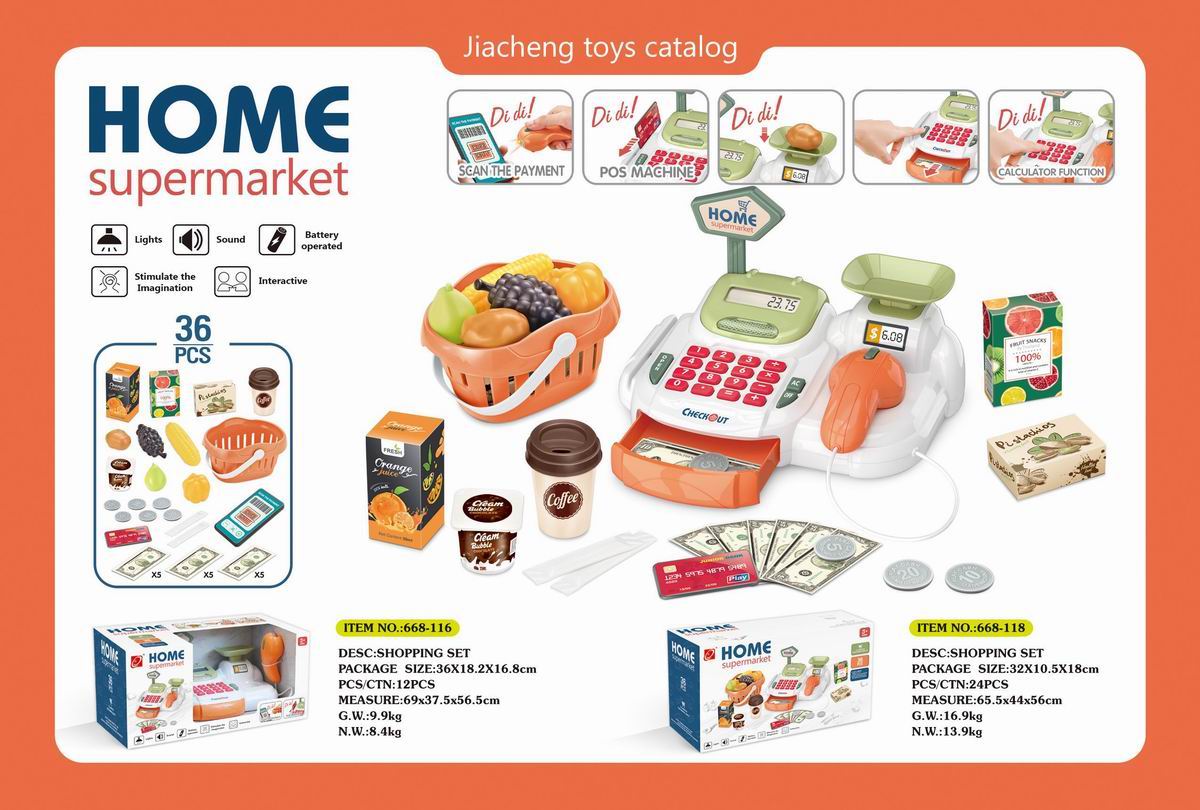 豪华超市组合套装+带电扫描器、收银机机(2粒AAA+2粒AA不包电)带购物篮的 |