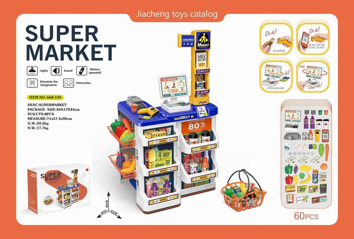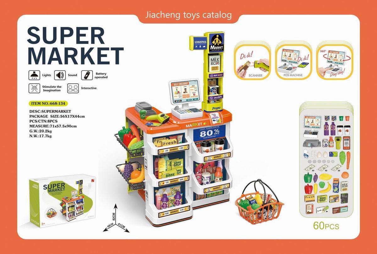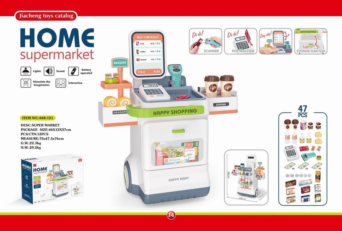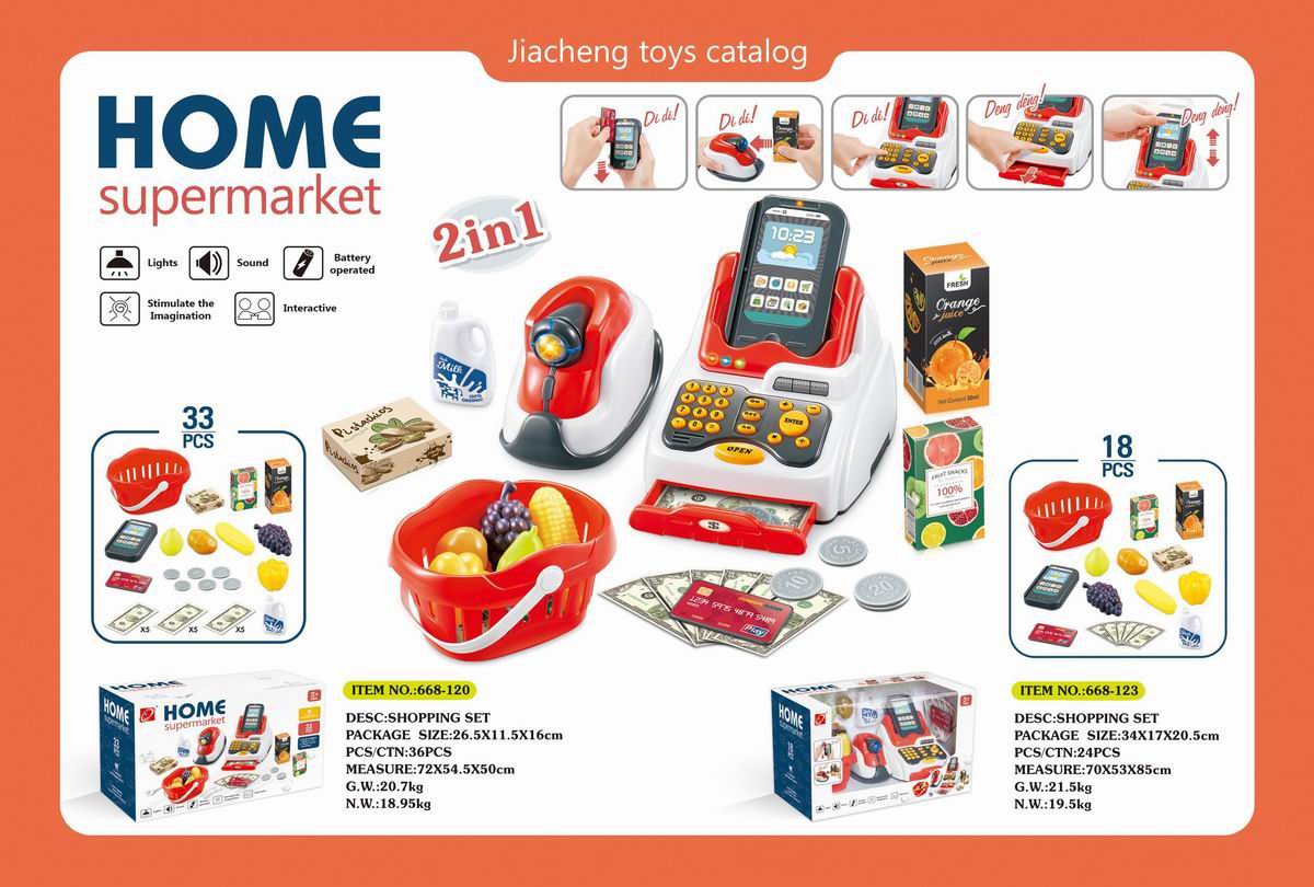 豪华超市组合套装+带电扫描器、收银机机(2粒AAA+2粒AA不包电)带购物篮的 |