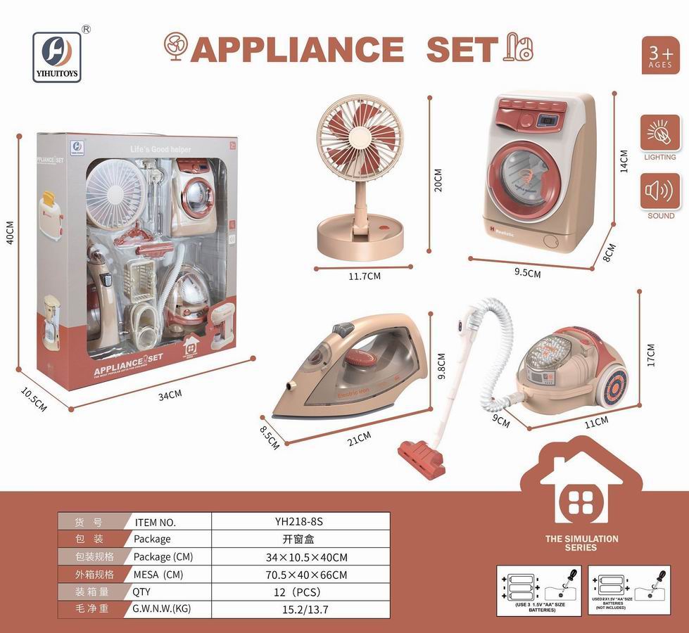 风扇+洗衣机+吸尘器+熨斗(带烟雾)