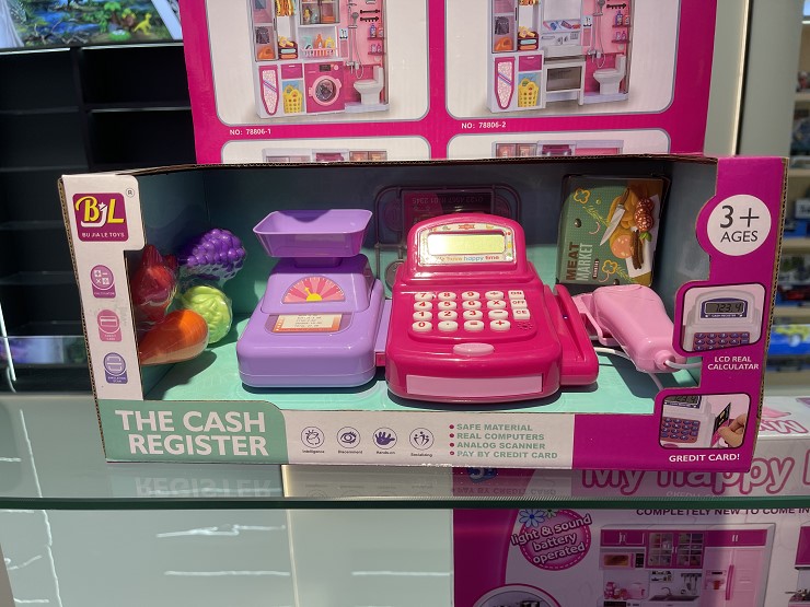 按键数字计算收银机带披萨+白菜+葡萄+萝卜+鱼+钱币,2*AA不包电(GCC) |