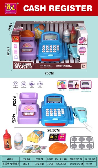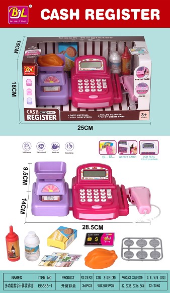 涂鸦仿真超市过家家多功能收银机套装带仿真刷卡,数字计算,存取钱,扫描功能+称+水果篮(GCC) |