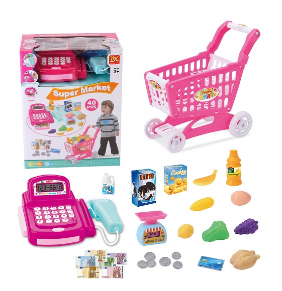 仿真超市过家家多功能收银机套装带仿真刷卡,数字计算,存取钱,扫描功能+购物车+称+水果蔬菜(GCC) |