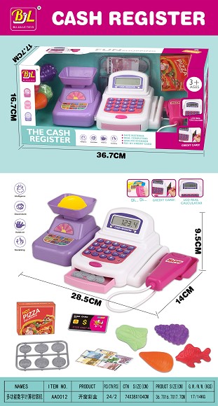 按键数字计算收银机带披萨+白菜+葡萄+萝卜+鱼+钱币,2*AA不包电(GCC) |