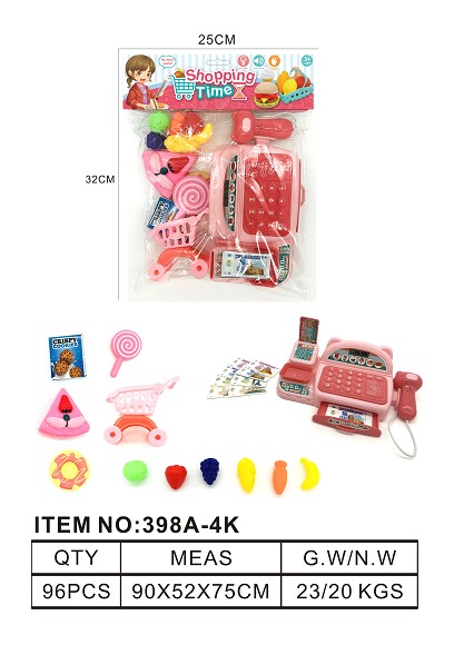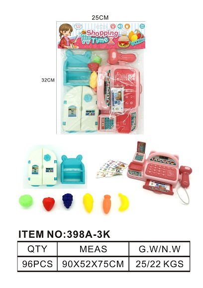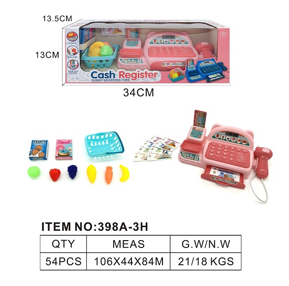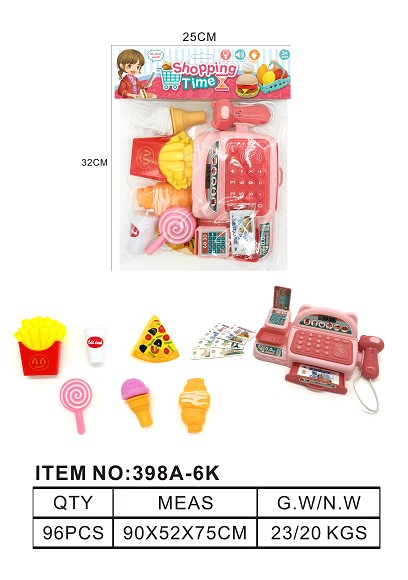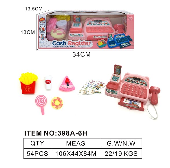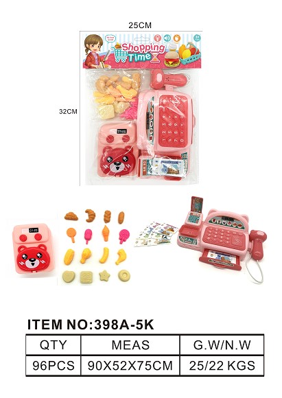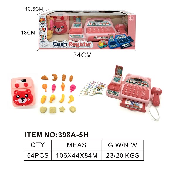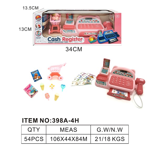 仿真收银机带灯光 声音 过家家套装 (粉红色)
