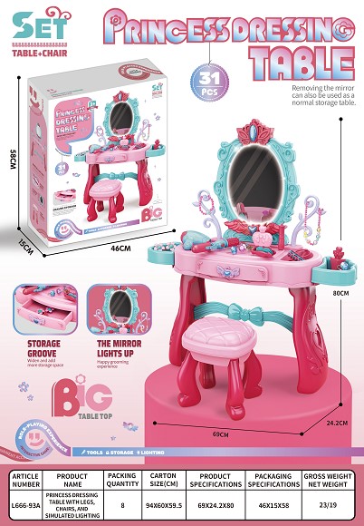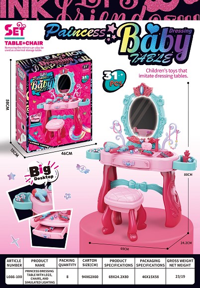 公主梳妆台带脚、椅子、仿真灯光 |