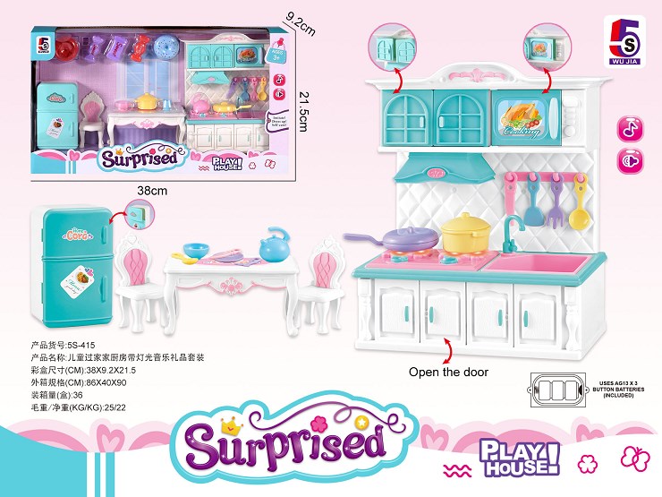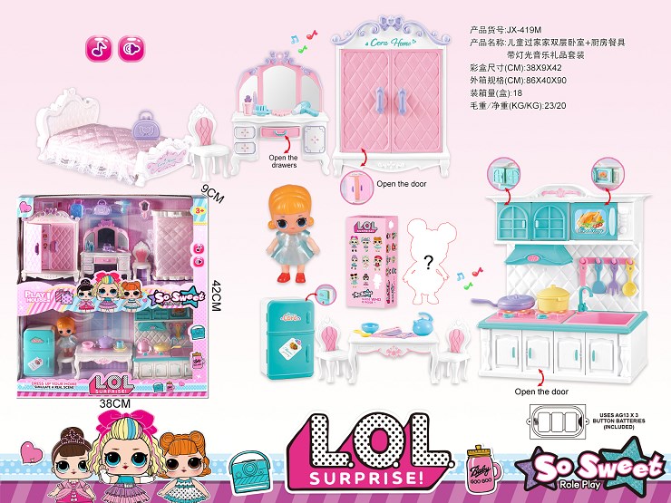 惊喜娃娃厨房餐具+房间梳妆台双层过家家套装